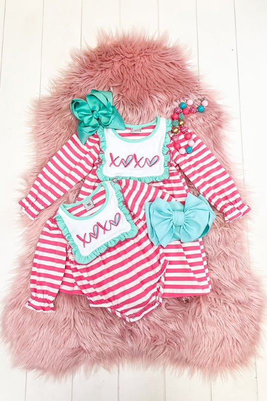 Pink & Aqua XOXO Stripe Romper