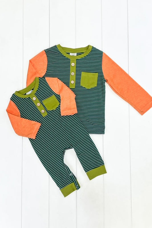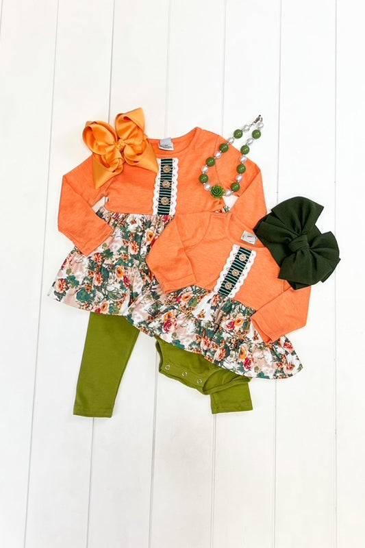 Orange & Olive Floral Romper